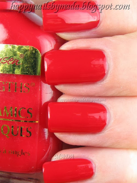 A co do lakierowej propozycji na dzisiaj. Fiery Red to kremowa czerwień, dosyć gęsta i w sumie dająca się położyć na jeden raz. Ma taki trochę świąteczny odcień.